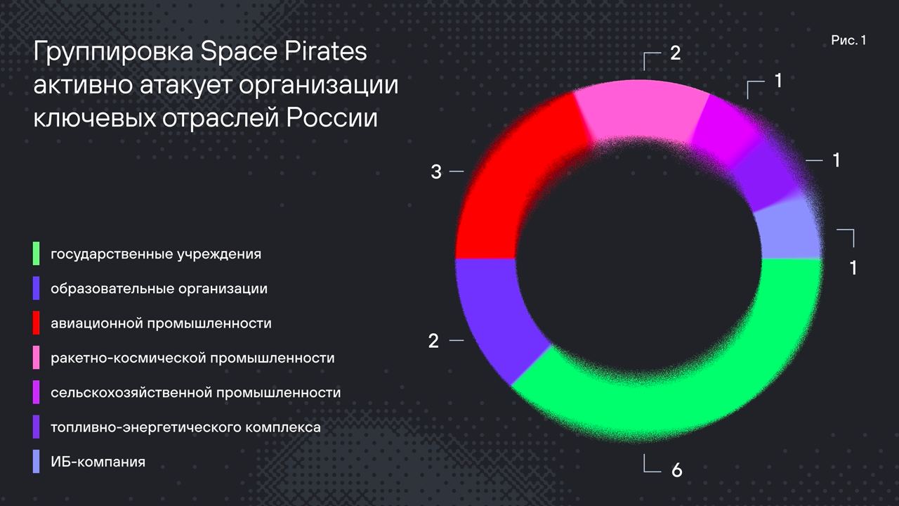 Согласно расследованию PT ESC, за последний год Space Pirates совершила успешные атаки по меньшей мере на 16 организаций в России. Основными целями злоумышленников по-прежнему являются шпионаж и кража конфиденциальной информации. Однако группировка расширила сферу своих интересов. Среди новых жертв эксперты выделяют государственные, образовательные учреждения, охранную организацию, предприятия авиационной, ракетно-космической и сельскохозяйственной промышленности, военно-промышленного и топливно-энергетического комплексов, а также компании, занимающиеся информационной безопасностью. Жертвой Space Pirates стало также одно министерство в Сербии.