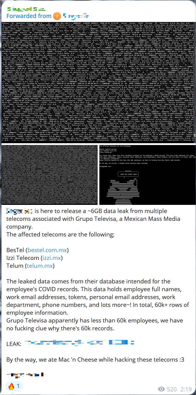 В Мексике киберпреступников больше привлекает финансовая сфера (16%). Одна из причин, почему злоумышленники могут раздавать данные бесплатно, — устаревание данных. Так, в январе 2024 года был опубликован пост с данными за 2020 год, связанными со вторым по величине банком Мексики — Banco Nacional de México, или Banamex.