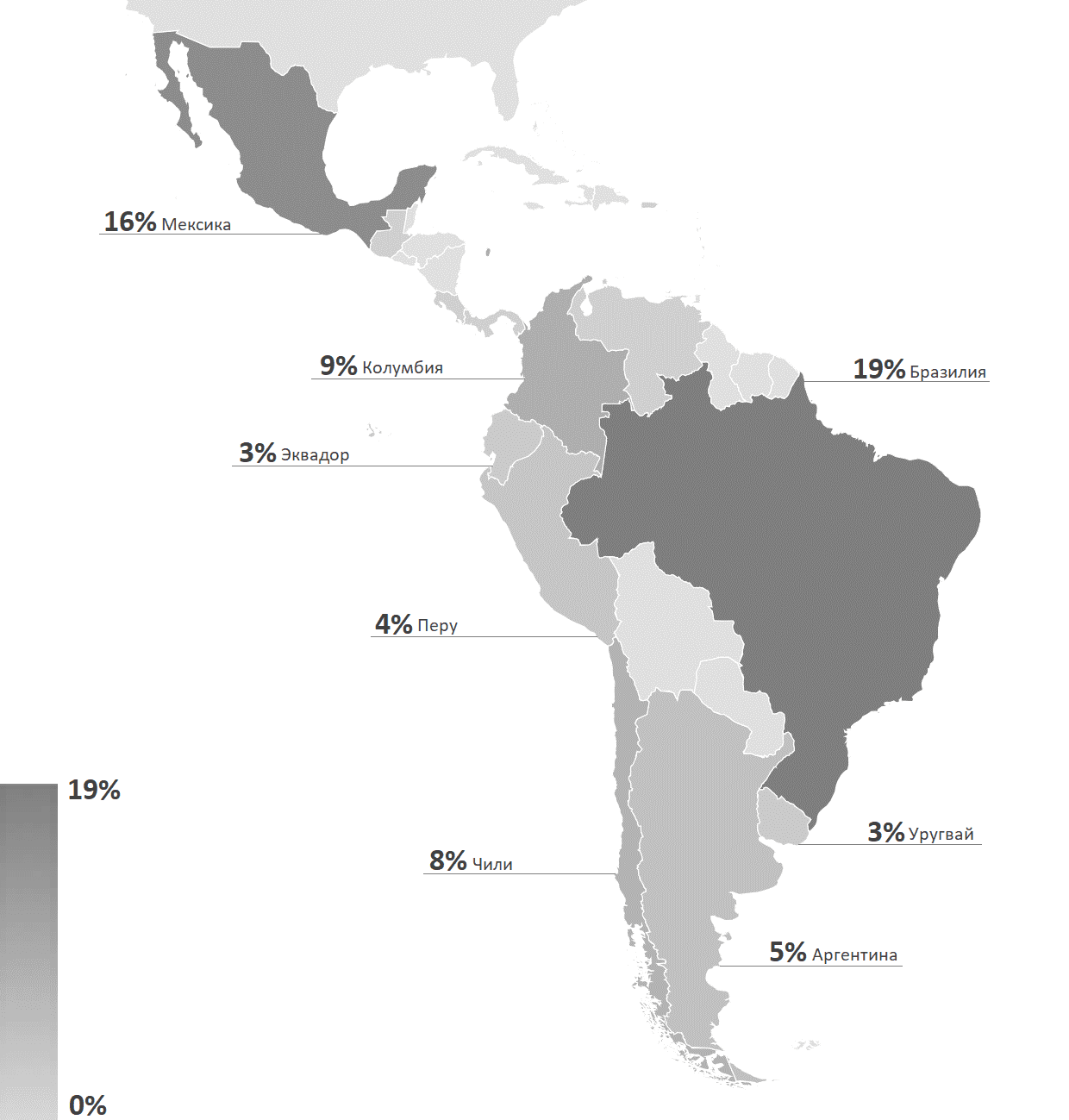 В рассматриваемый период кибератаки, как правило, были направлены на организации в Бразилии (19%) и Мексике (16%).