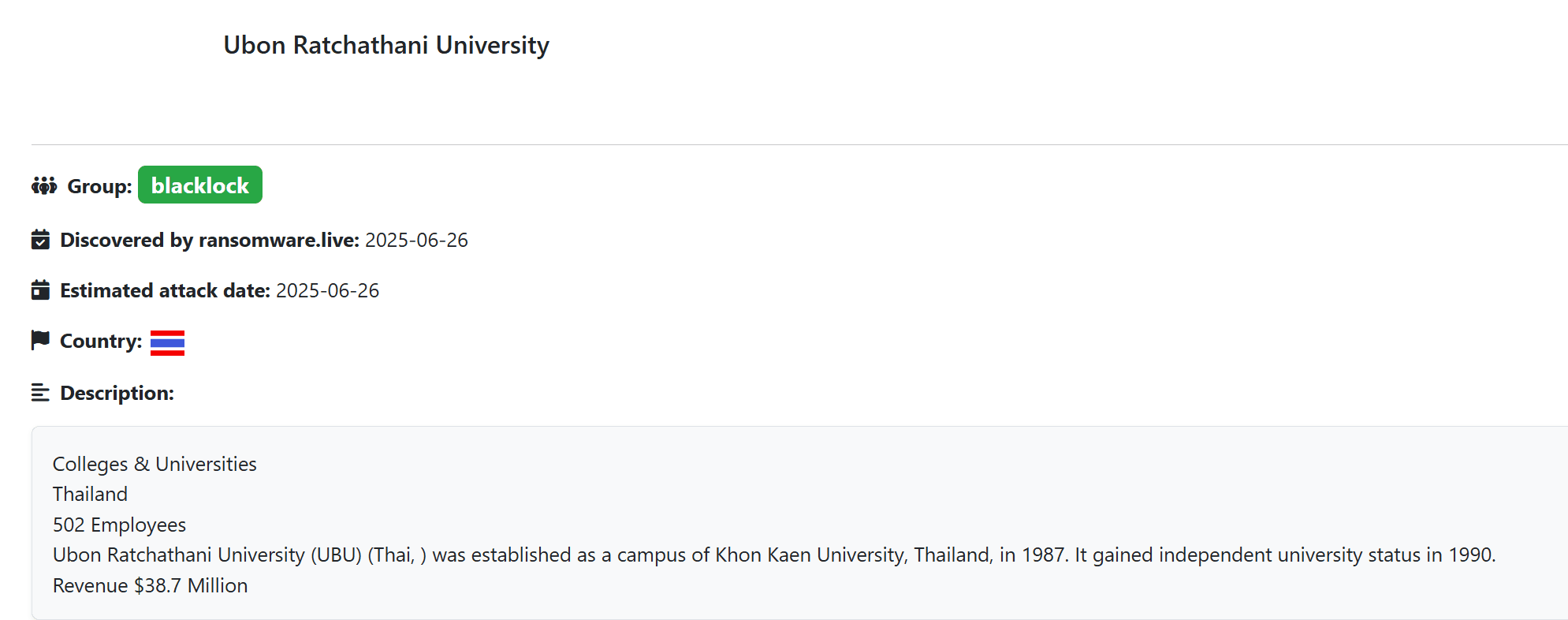 Анализируя другие закрытые Telegram-каналы и дарквеб-форумы, мы смогли найти подтверждения атак программ-вымогателей на учебные заведения в Таиланде, DDoS-атак на Вьетнамский национальный университет и утечки данных из института MJQ Education в Камбодже.