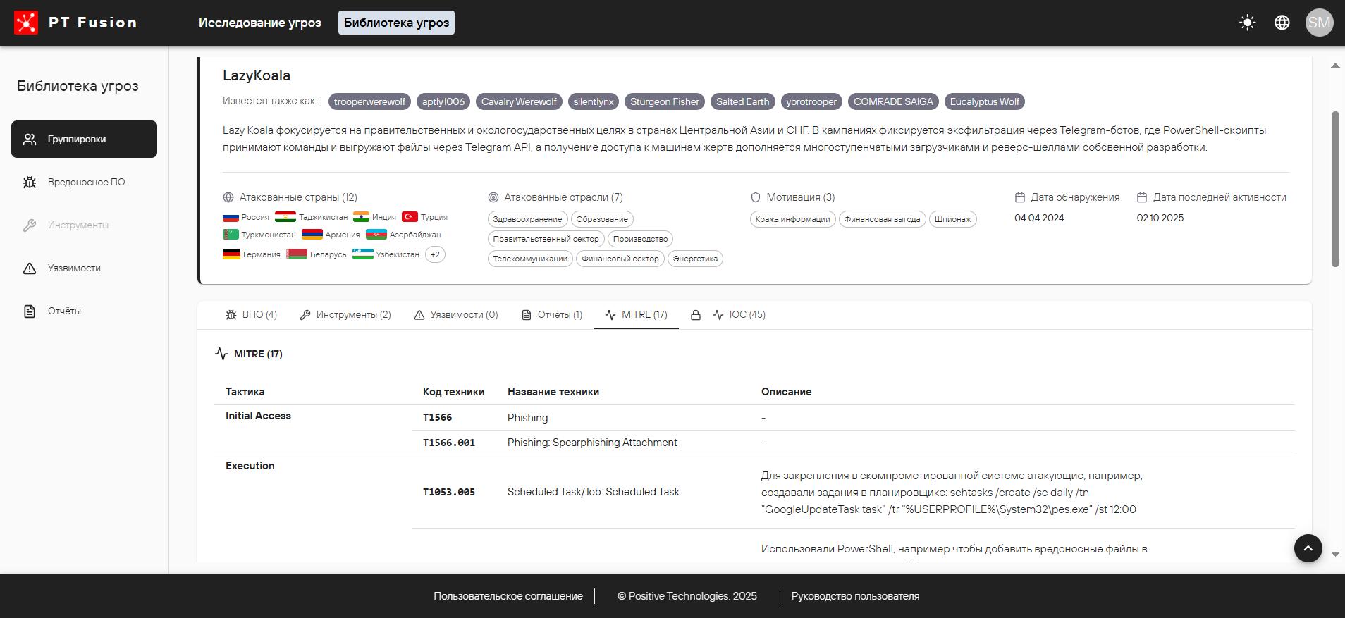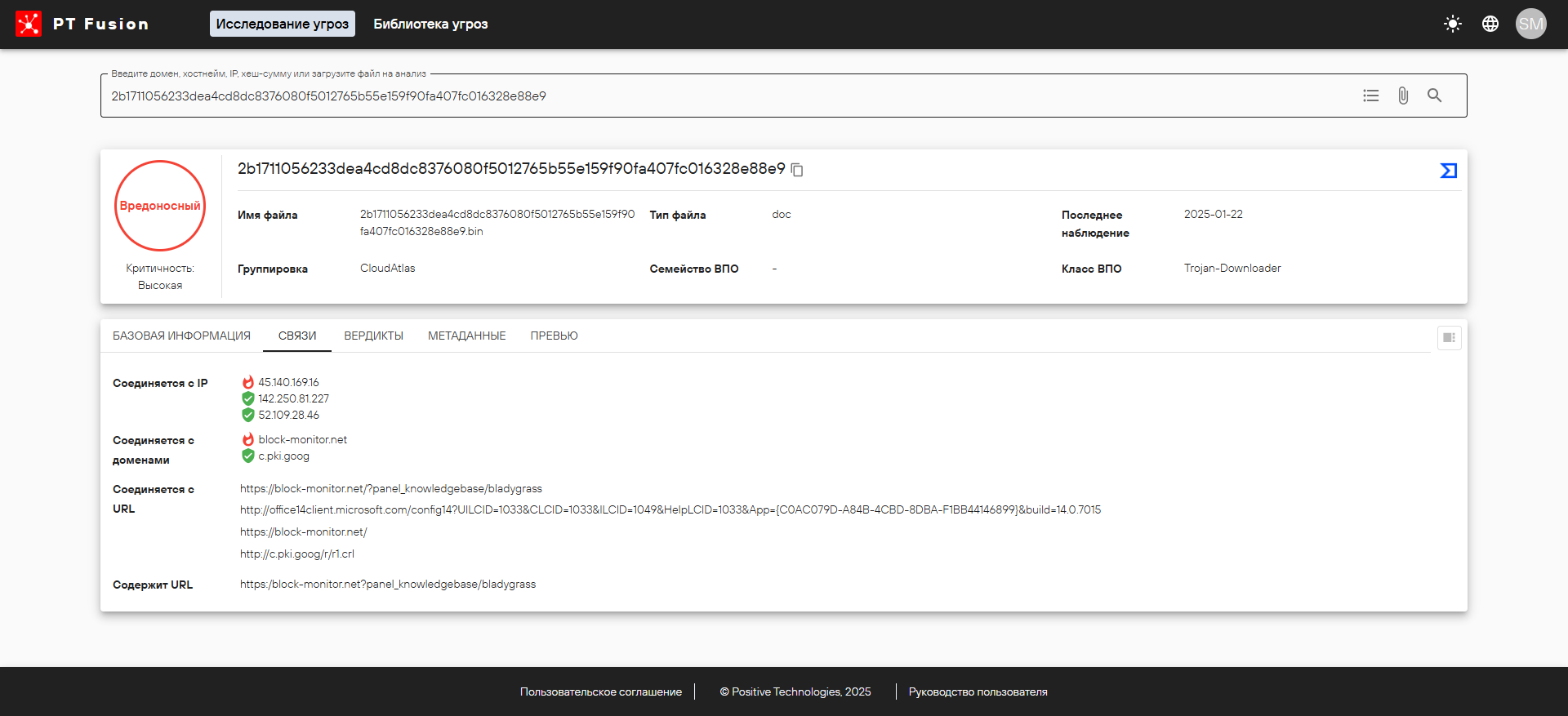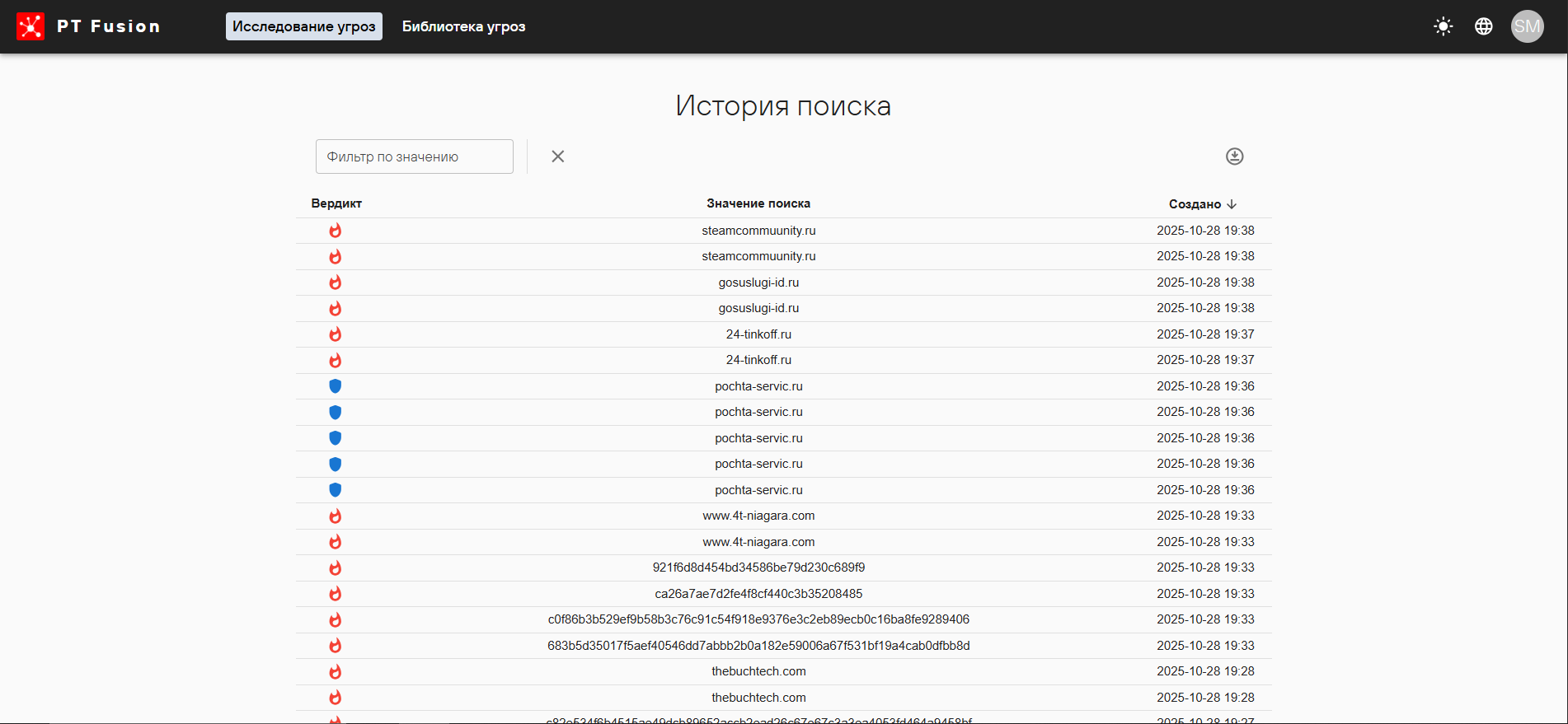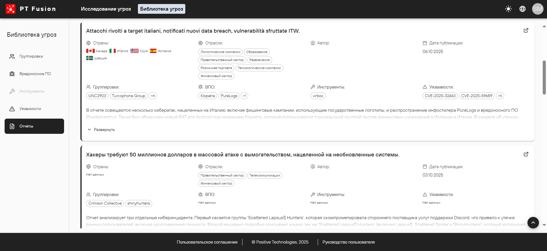 PT Fusion объединяет все ключевые данные о киберугрозах в одном удобном и интуитивно понятном интерфейсе.