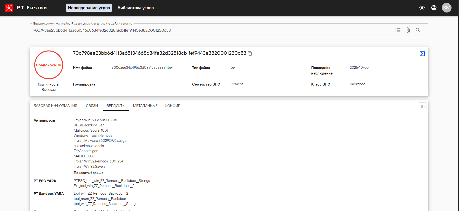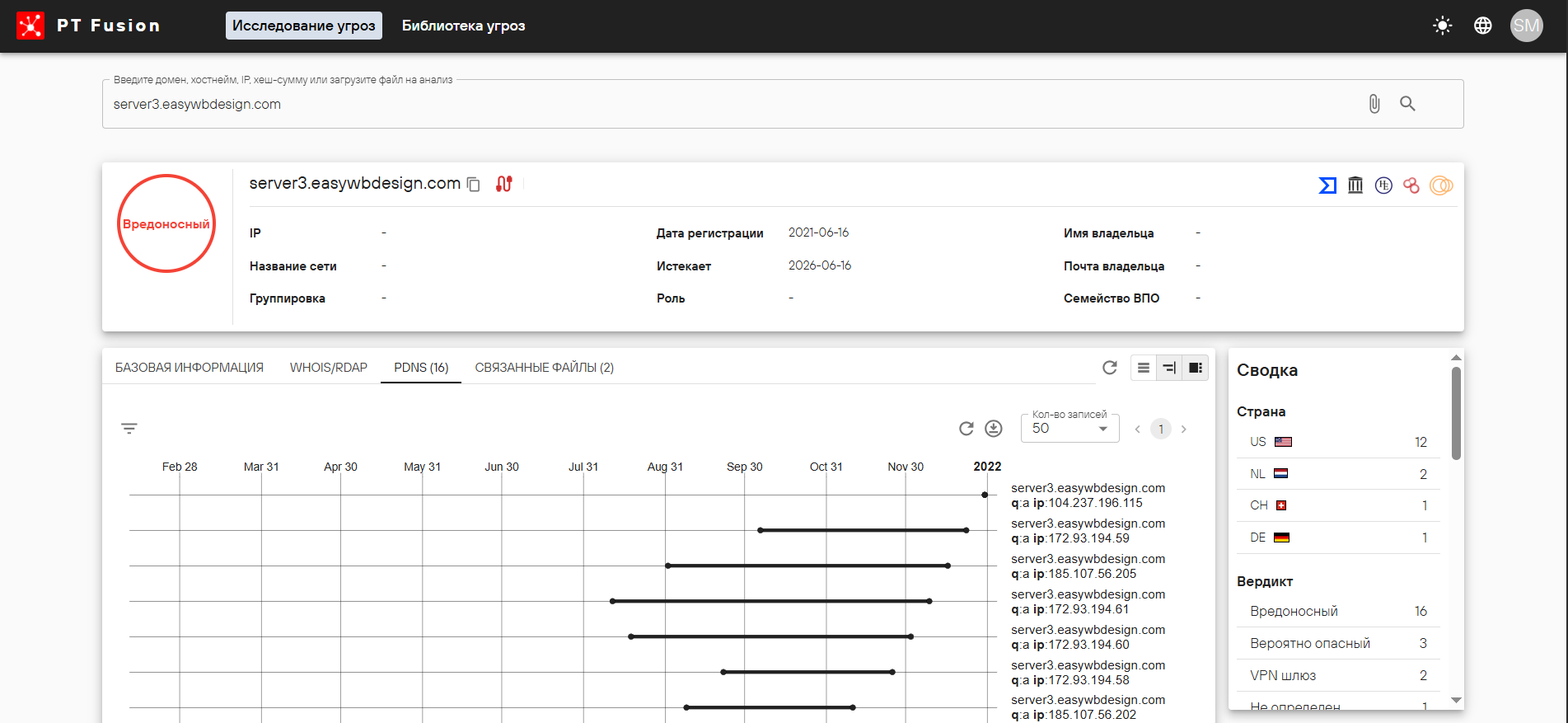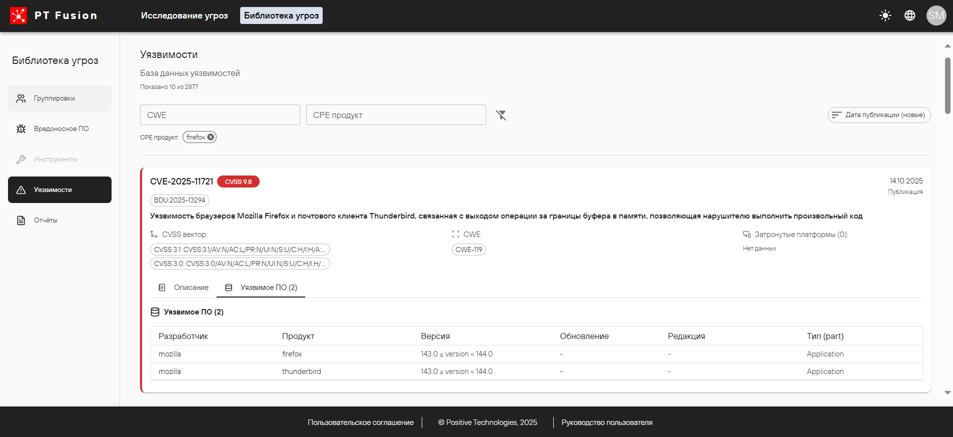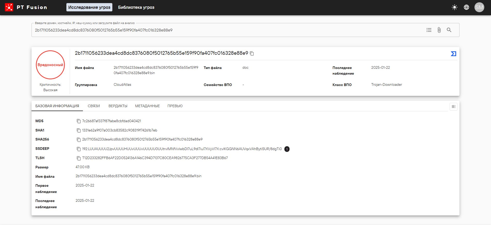 PT Fusion объединяет все ключевые данные о киберугрозах в одном удобном и интуитивно понятном интерфейсе.